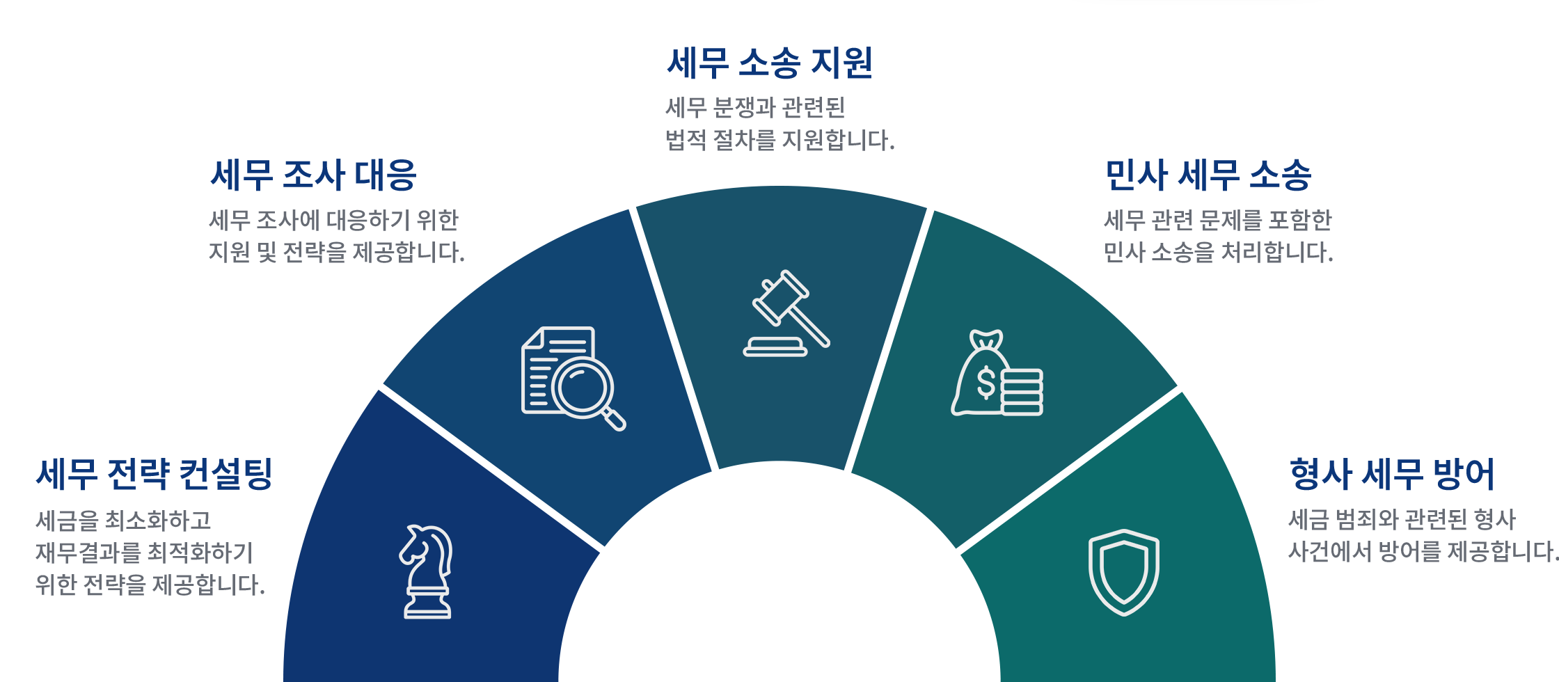 법무법인 B&H는 검찰, 국세청, 관세청, 회계법인 등 각 전문분야에서의 전문자격과 풍부한 근무경력을 가지고 있는 변호사, 전문위원들로 구성된 팀으로 절세방안, 세무자문, 세무조사대응, 조세불복 행정 및 민사소송, 조세 및 관세 형사범죄 대응에 관하여 차원 높은 법률서비스를 제공합니다.