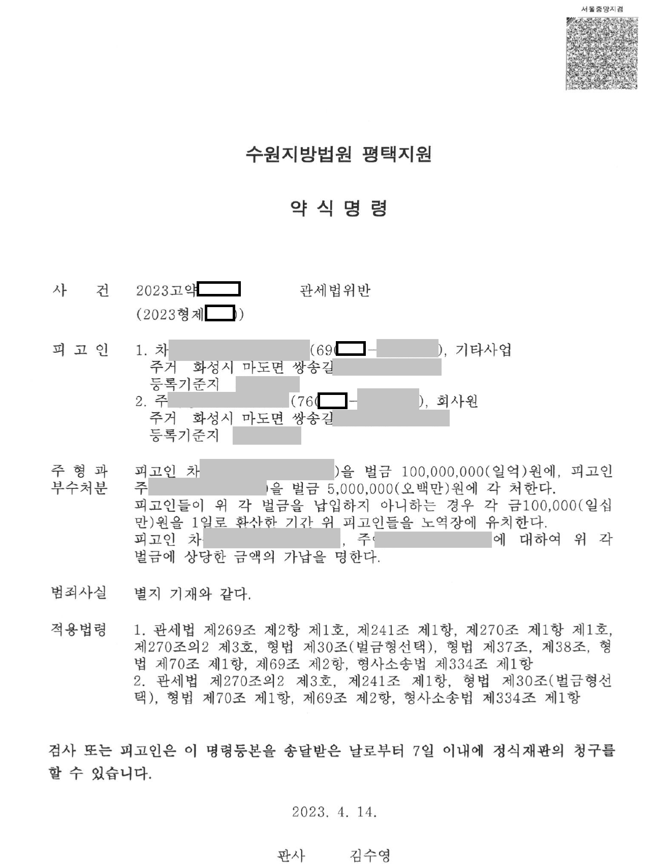 관세법 위반(원산지 허위신고에 따른 관세포탈) 혐의 불기소