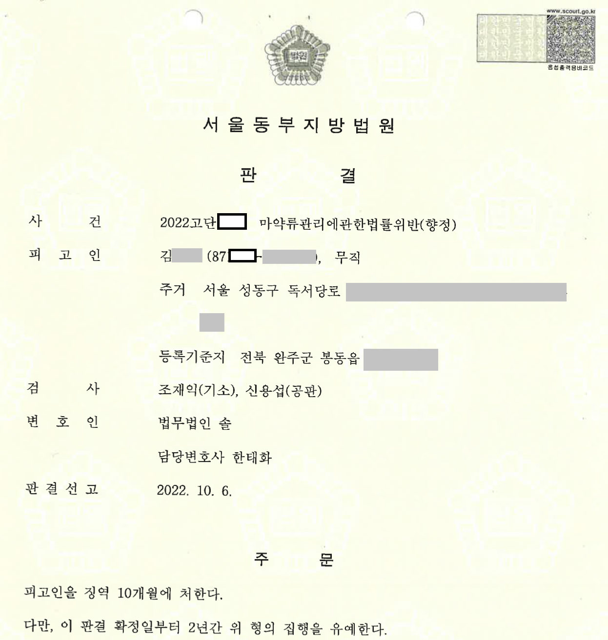 마약류관리에관한법률위반(향정) 사건